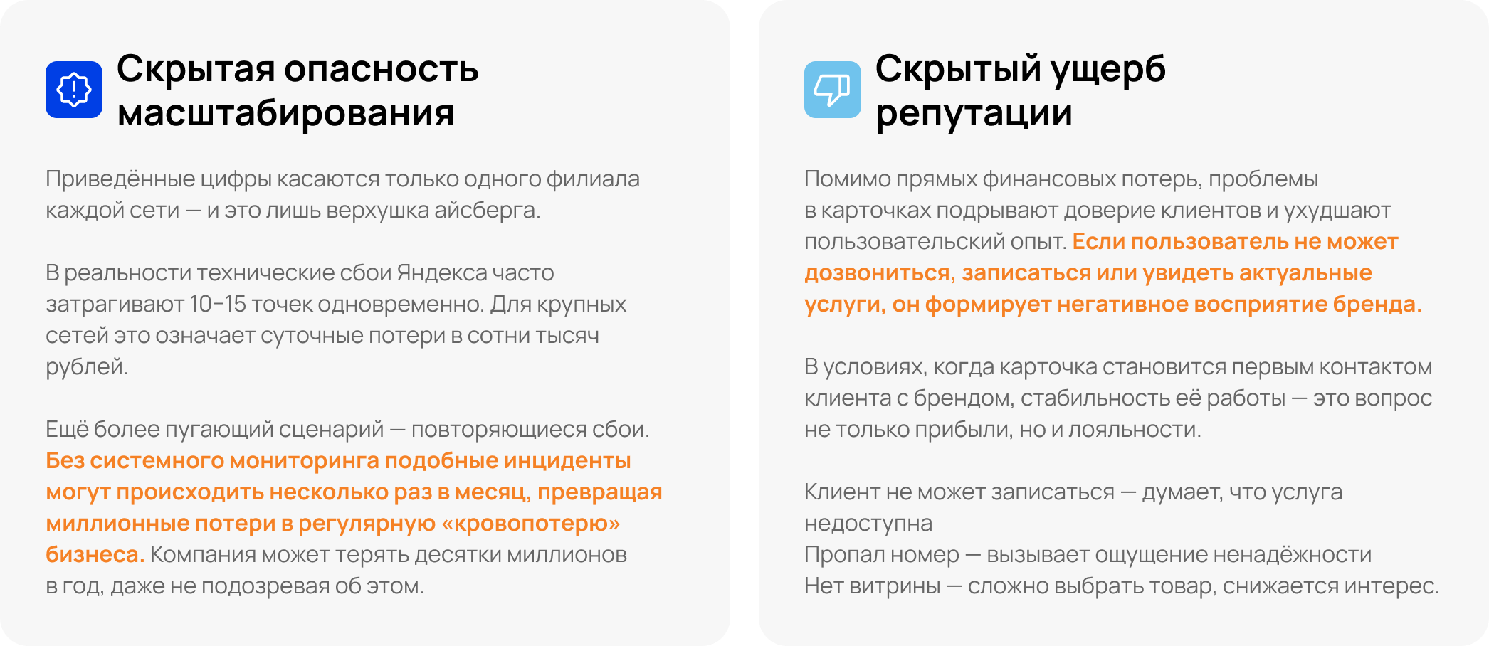 Каждый из этих сбоев демонстрирует критическую важность стабильной работы карточек. Любой технический сбой — это моментальная просадка в конверсии, причем часто незаметная для самого бизнеса.