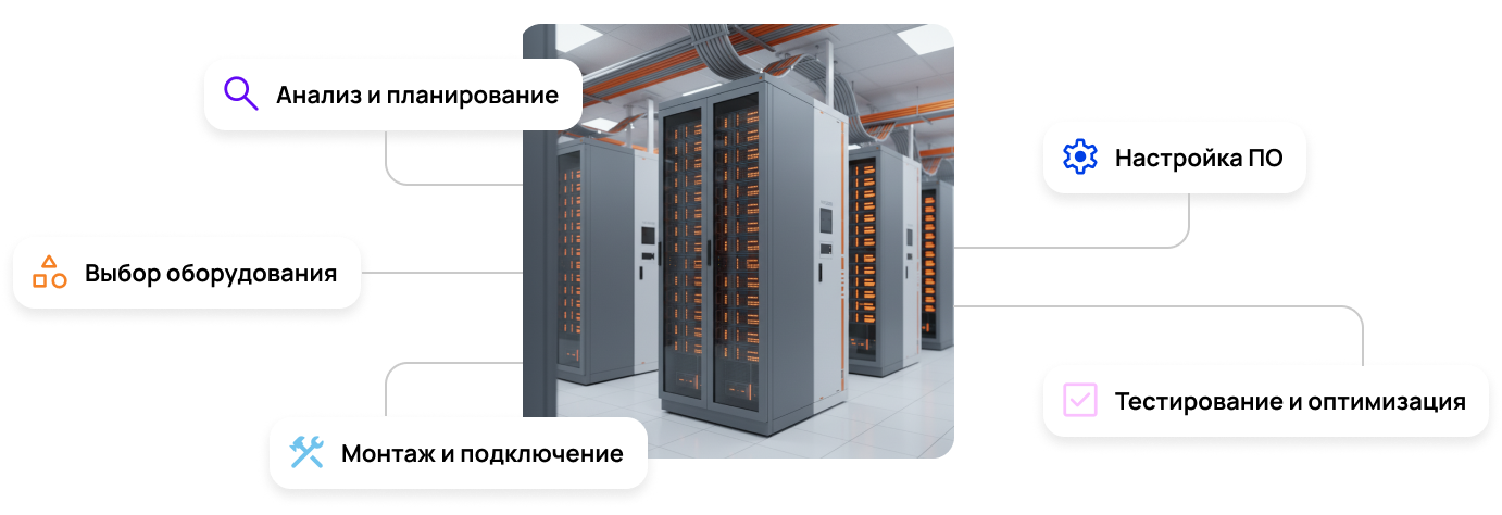 Проектирование и создание необходимой аппаратной и программной среды для эффективного функционирования ИИ-систем, включая GPU-серверы и специализированное ПО